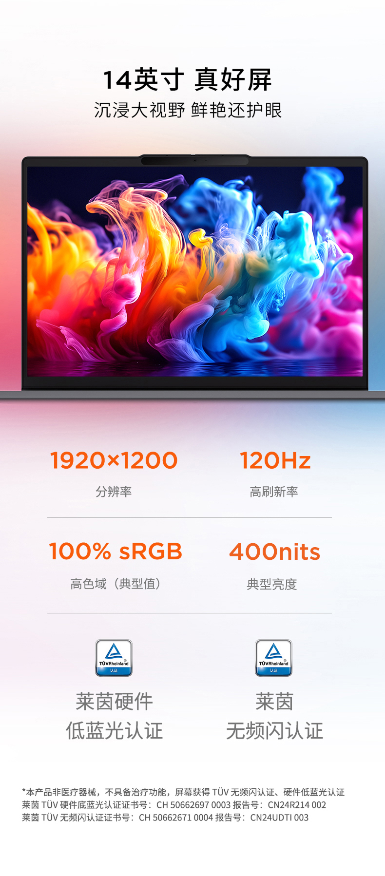 首页 >> 联想小新14 14英寸轻薄笔记本电脑(锐龙R7-H255 16G 512G 高色域 400nit 120Hz高刷)